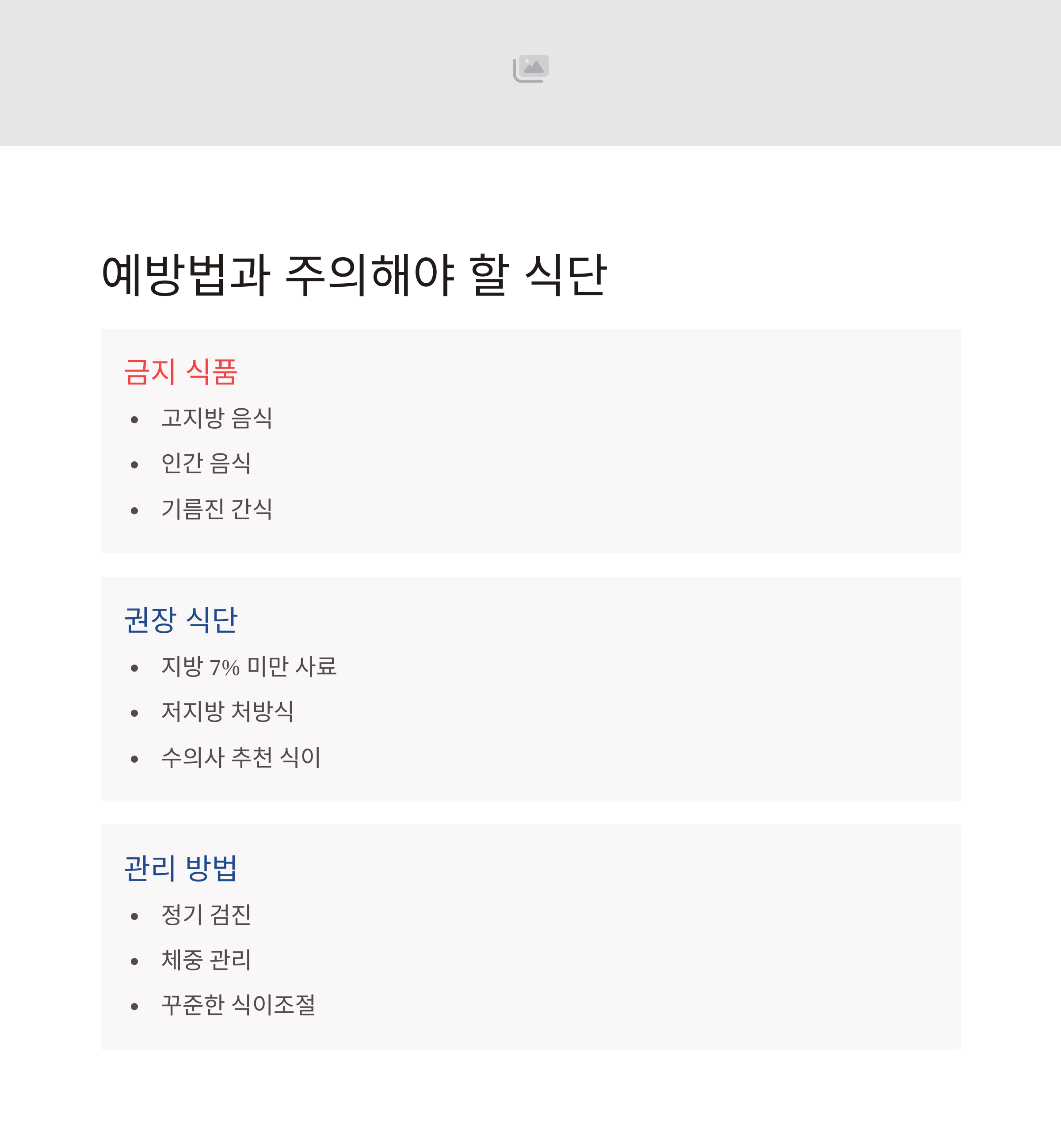 저 역시 우리집 강아지 콩순이가 급성 췌장염을 앓았던 경험이 있습니다. 평소에도 토를 자주 하고, 장이 약해 설사를 반복하던 아이라 단순한 소화기 문제로만 여겼던 것이 화근이었습니다. 지금도 증상이 반복될 때마다 다시 검사를 고민할 정도로 걱정이 남아 있습니다. 보호자 입장에서 미세한 증상을 놓치지 않고, 단순한 소화기 이상으로만 넘기지 않는 세심한 관찰이 필요하다는 것을 절실히 느꼈습니다. 조기 진단을 위해선 사소한 이상 반응에도 주의를 기울이고, 주기적인 체크를 두려워하지 않는 자세가 중요합니다.