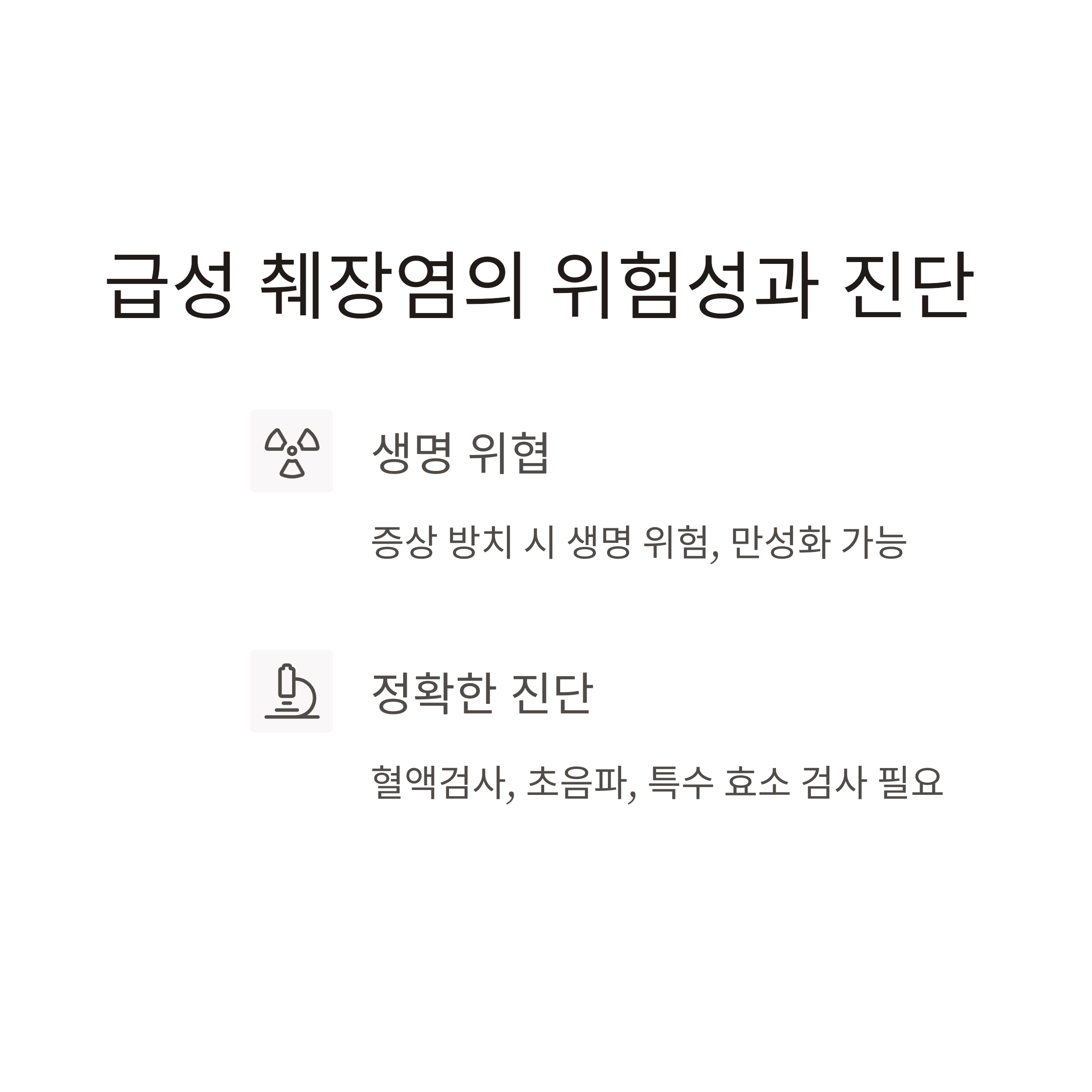 혈액검사, 복부 초음파, 엑스레이 등 정밀 검사를 통해 췌장염 여부를 진단합니다. 자가 판단은 위험하므로 전문의 상담이 필요합니다.