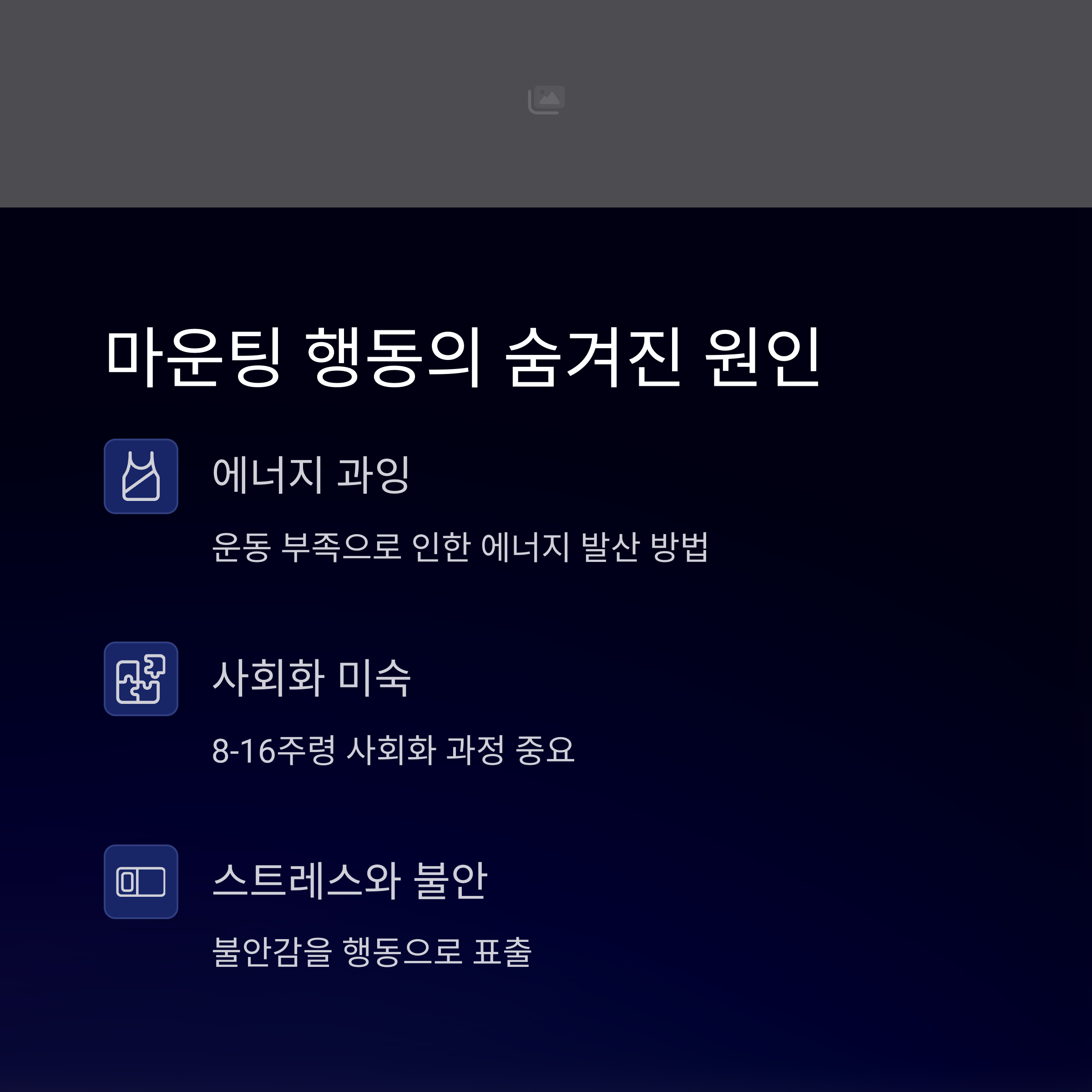 | 마운팅 원인 | 훈련 방법 | 보호자 대응 |