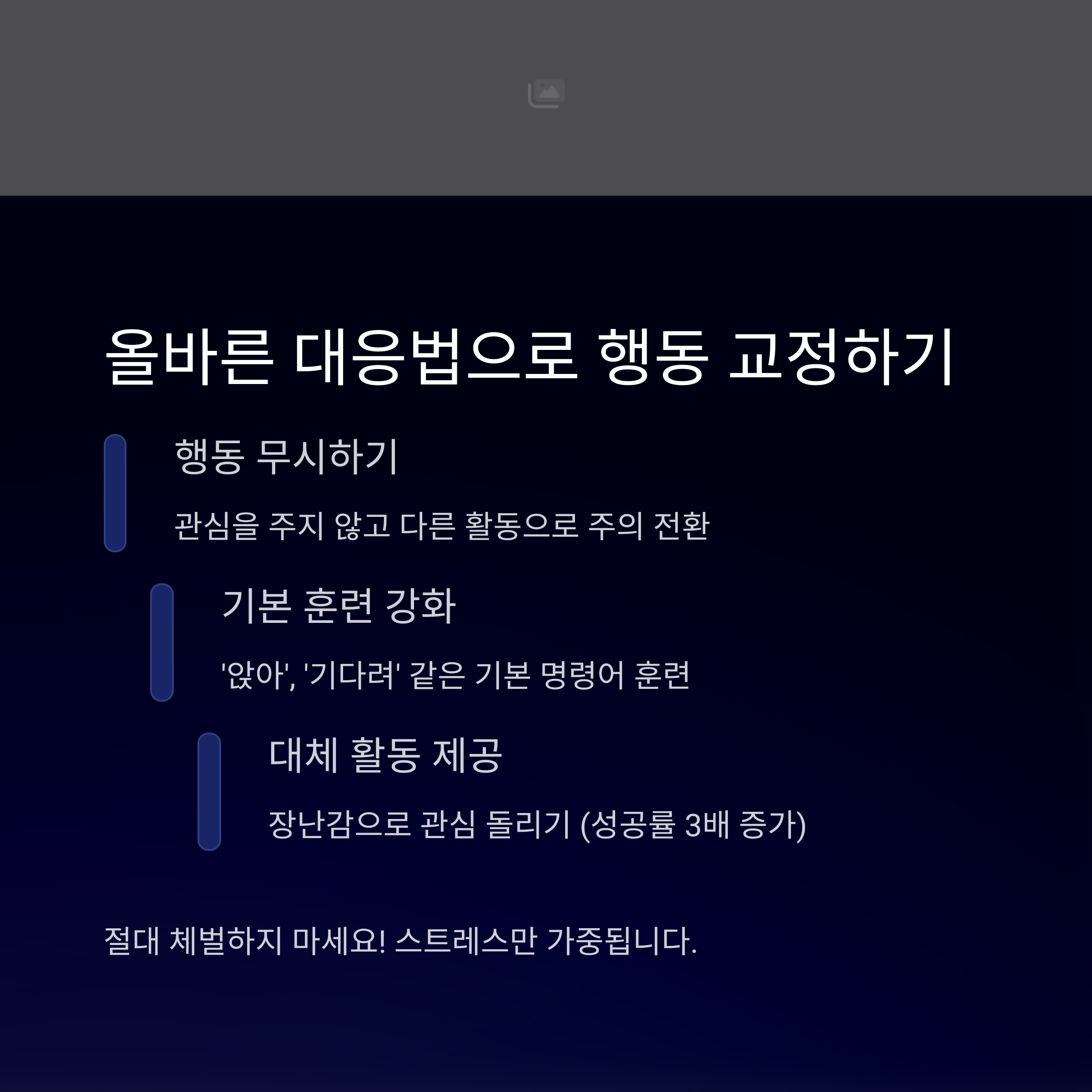 | 스트레스, 에너지 과잉, 사회화 부족 등 | 무시하기, 대체 행동 유도, 보상 훈련 | 혼내지 않고 긍정적인 행동을 강화하기 |