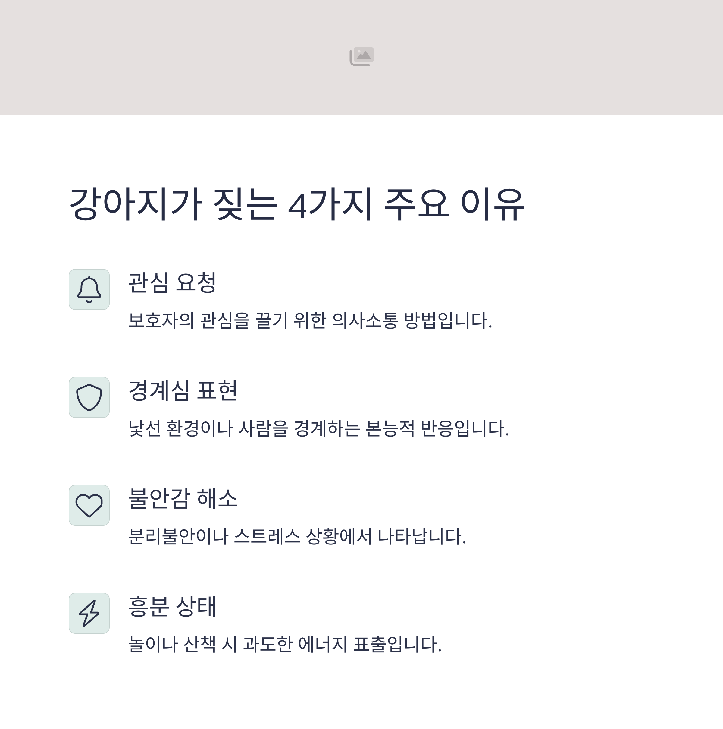 | 원인 분석 | 강아지가 짖는 이유를 먼저 파악해야 합니다. |
