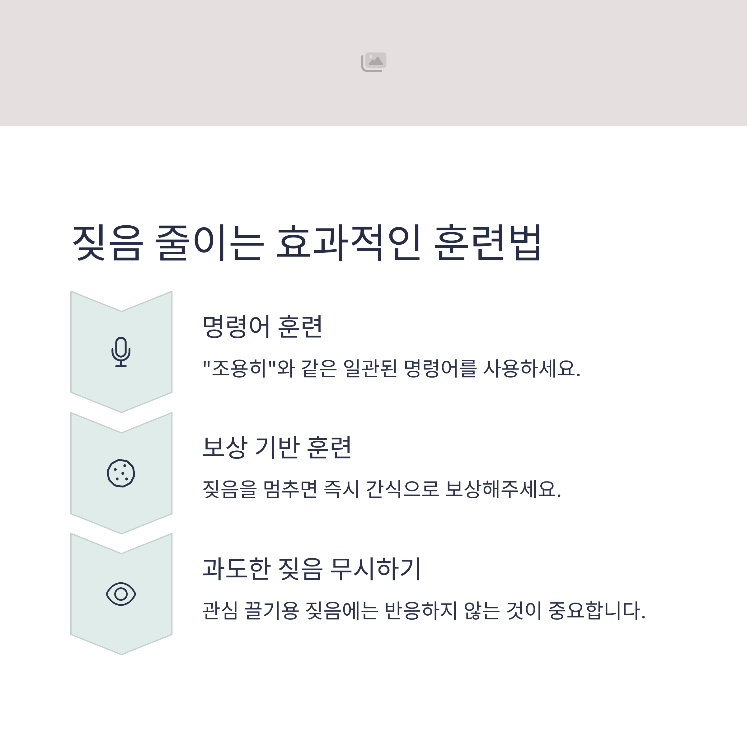 | 명령어 훈련과 보상 활용 | 상황별 짖는 이유 확인 | 부정적 행동 무시 전략 |