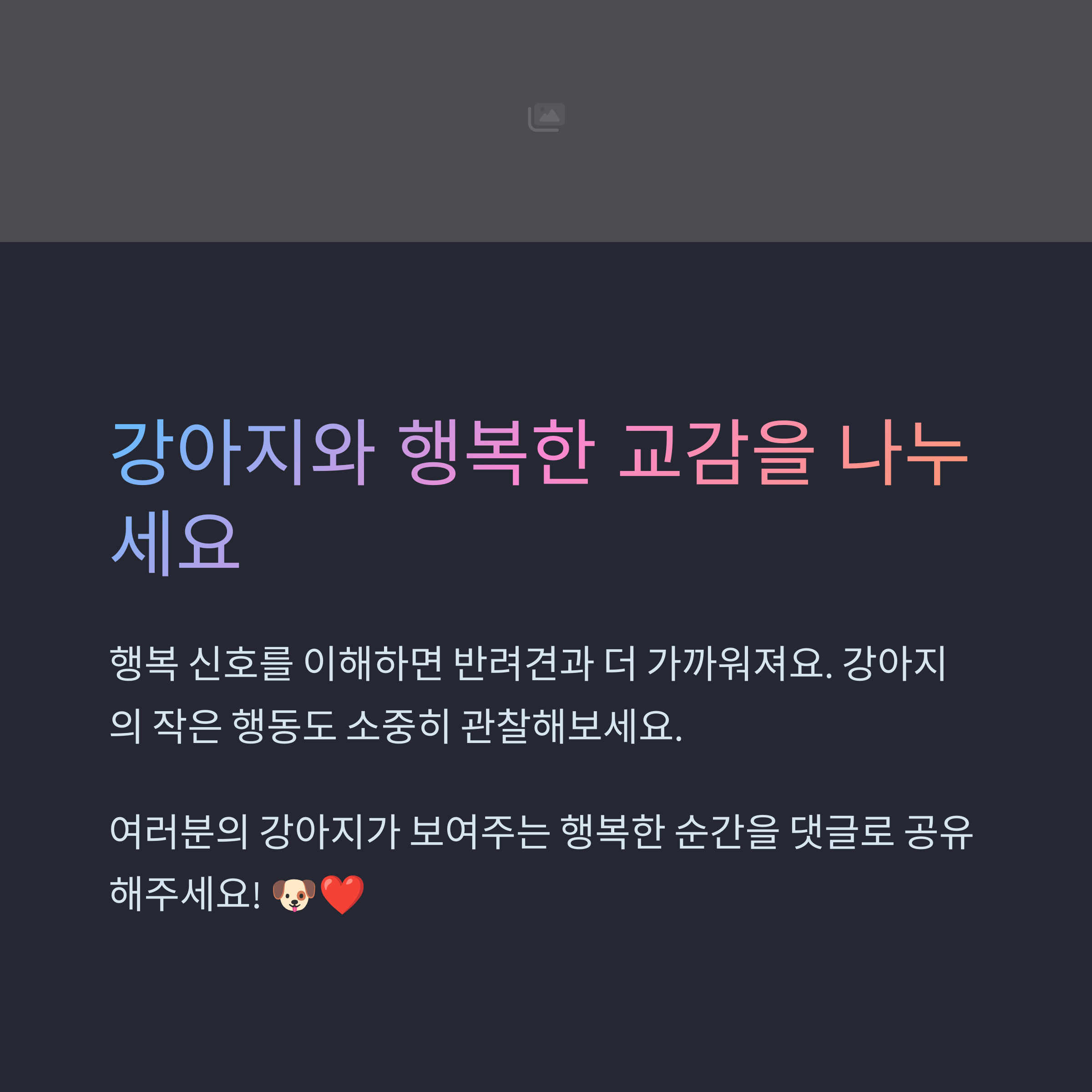 여러분의 반려견은 행복할 때 어떤 행동을 하나요? 댓글로 여러분의 소중한 경험을 공유해 주세요. 더 많은 반려인과 공감하고 소통할 수 있는 따뜻한 공간이 되었으면 좋겠습니다.