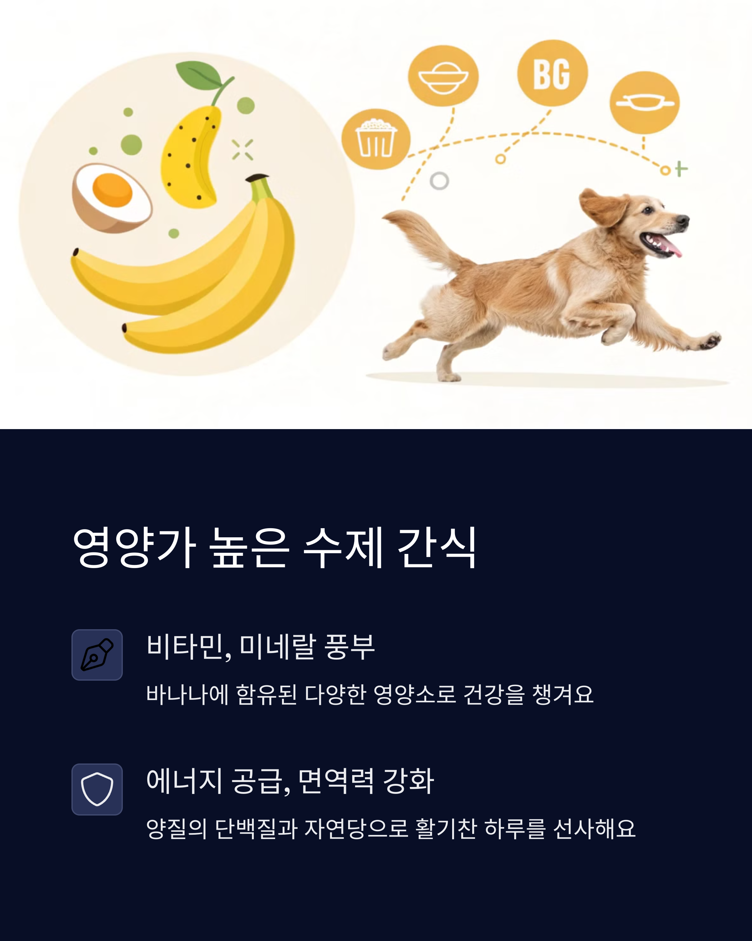 | 반려견 맞춤 건강 간식 | 단백질과 섬유소 풍부 | 바나나와 계란으로 간단하게 |