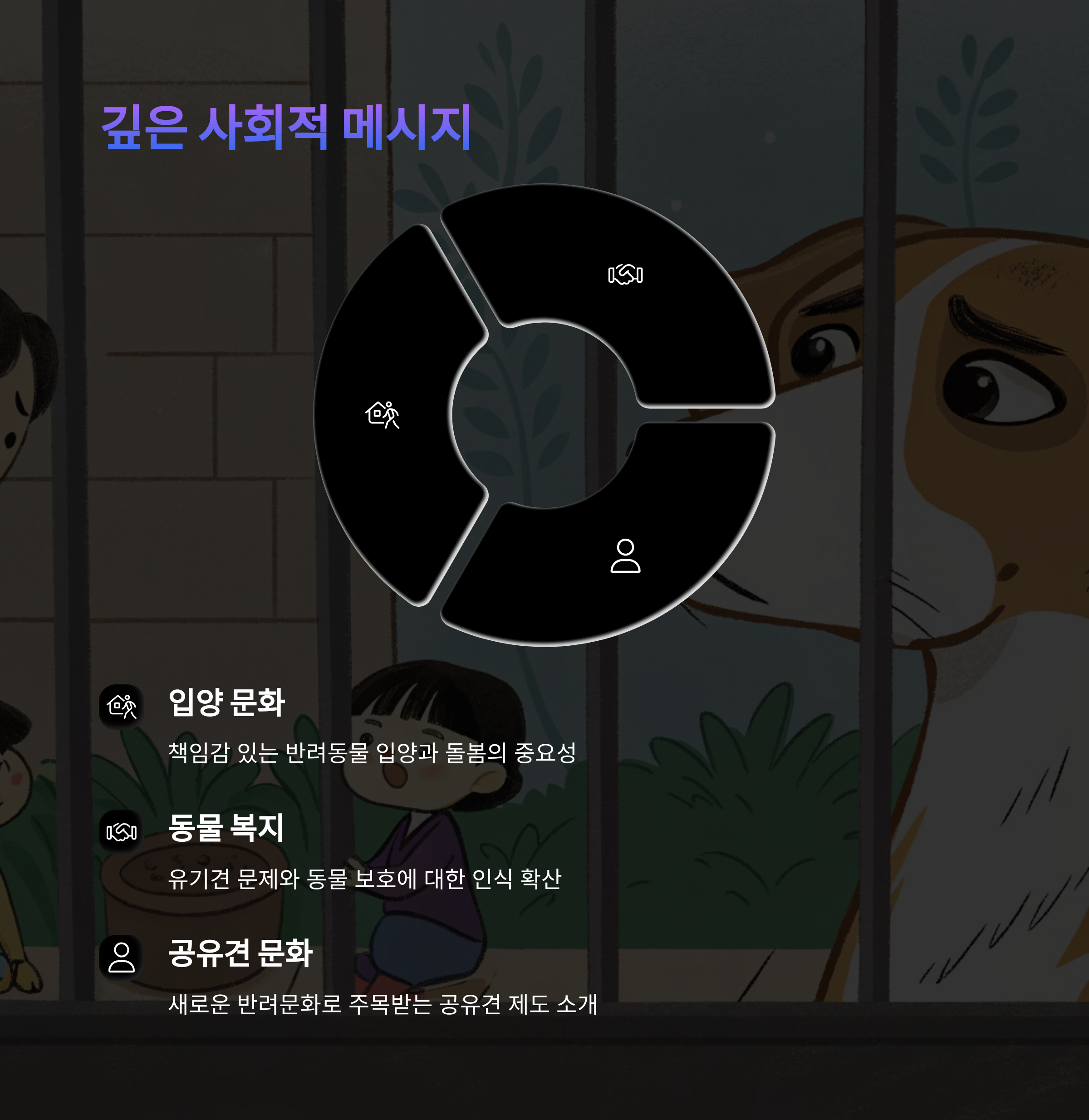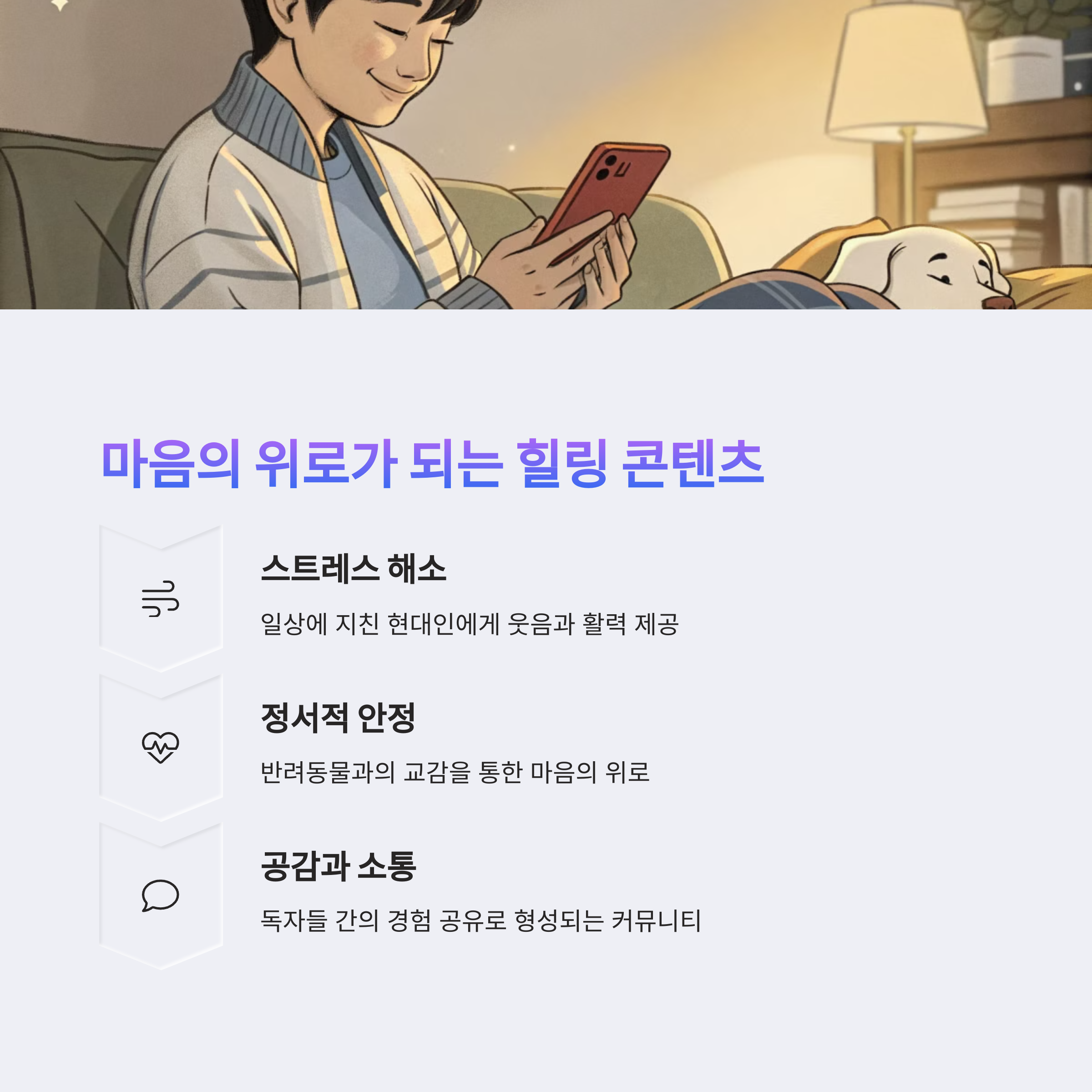 | 힐링과 감동을 주는 스토리 | 반려동물 보호의 중요성 | 반려인들에게 위로와 공감 제공 |