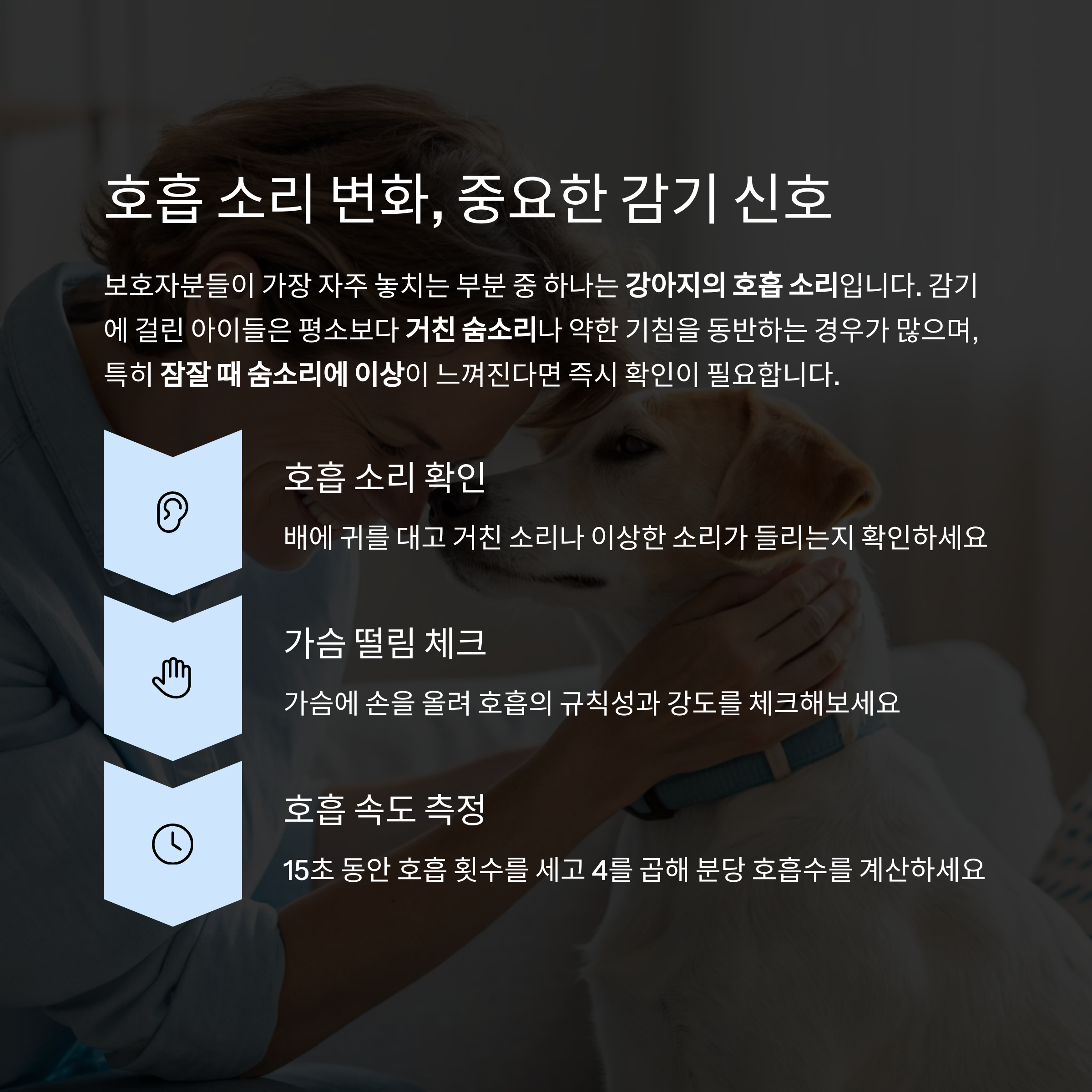 셀프 체크 방법 호흡 상태와 행동 변화를 관찰해보세요.
