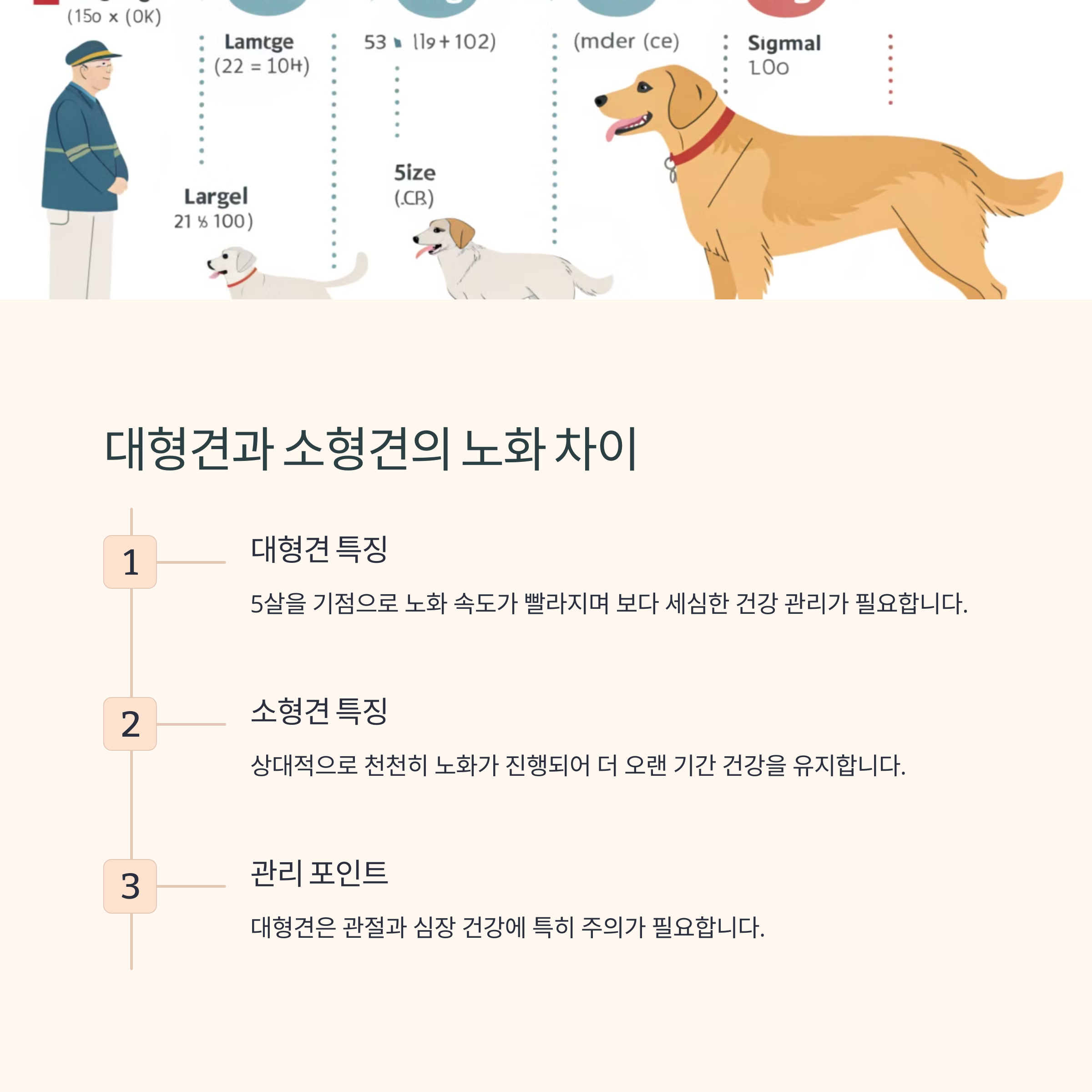 네, 다릅니다. 소형견은 5~6살 이후 노화 속도가 느려지지만, 대형견은 5살 이후 급격히 나이가 들어갑니다. 따라서 대형견은 7살부터 노령견 관리를 시작하는 것이 좋습니다.