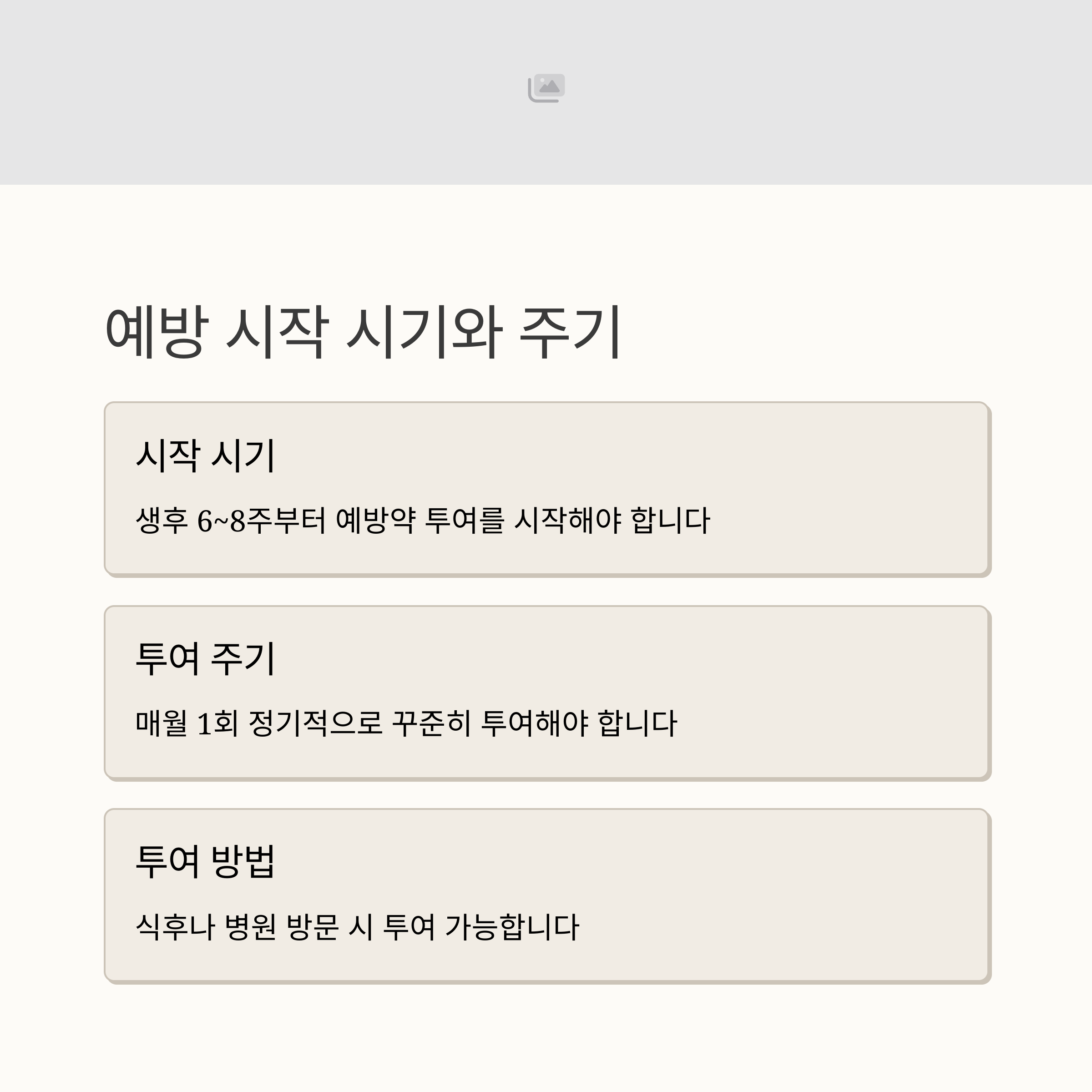 | 예방 시작 시기 | 생후 6~8주부터 예방약 투여를 시작해야 합니다. |
