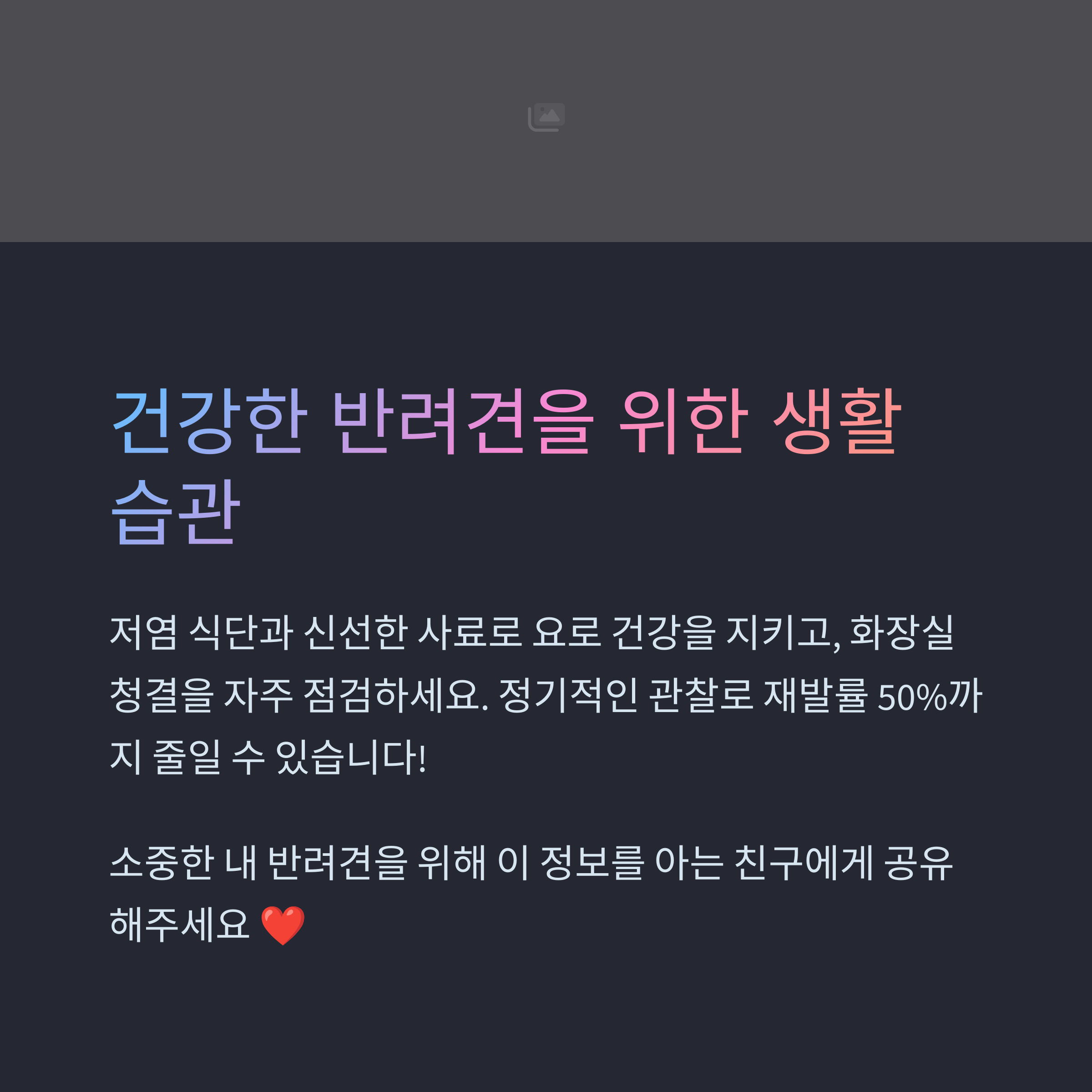 강아지 요도염은 단순한 소변 문제처럼 보일 수 있지만, 심하면 생명을 위협할 수 있는 심각한 질병으로 번질 수 있습니다. 그러므로 초기 증상을 놓치지 않고 빠르게 대응하는 것이 무엇보다 중요합니다. 이번 포스팅에서 소개한 증상과 대처법을 통해 우리 반려견의 건강을 지켜줄 수 있는 좋은 계기가 되길 바랍니다. 평소 배뇨 습관을 관찰하고, 물 섭취를 늘리는 작은 습관만으로도 큰 예방 효과를 볼 수 있습니다. 무엇보다도 사랑으로 돌보는 보호자의 관심이 가장 큰 치료입니다.