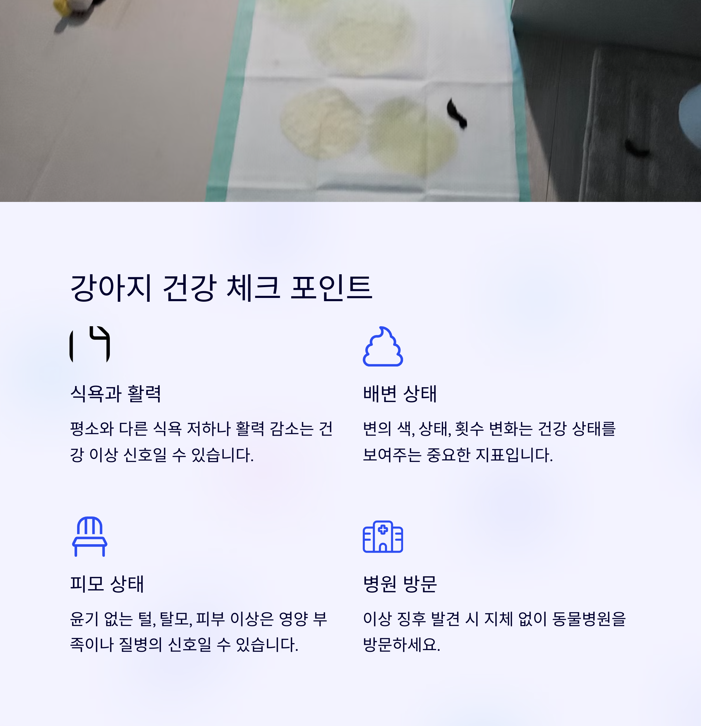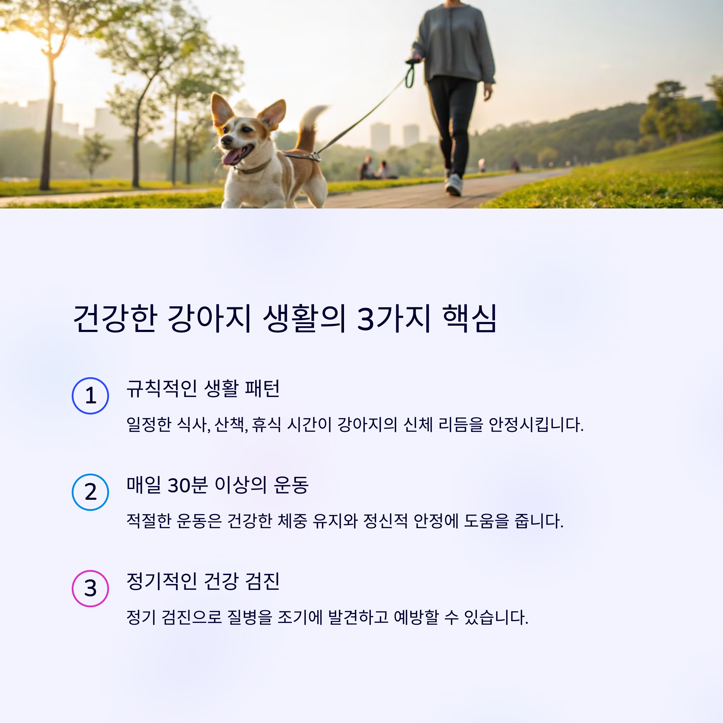 반려견의 건강은 특별한 일보다 **매일의 습관**에서 시작됩니다.
