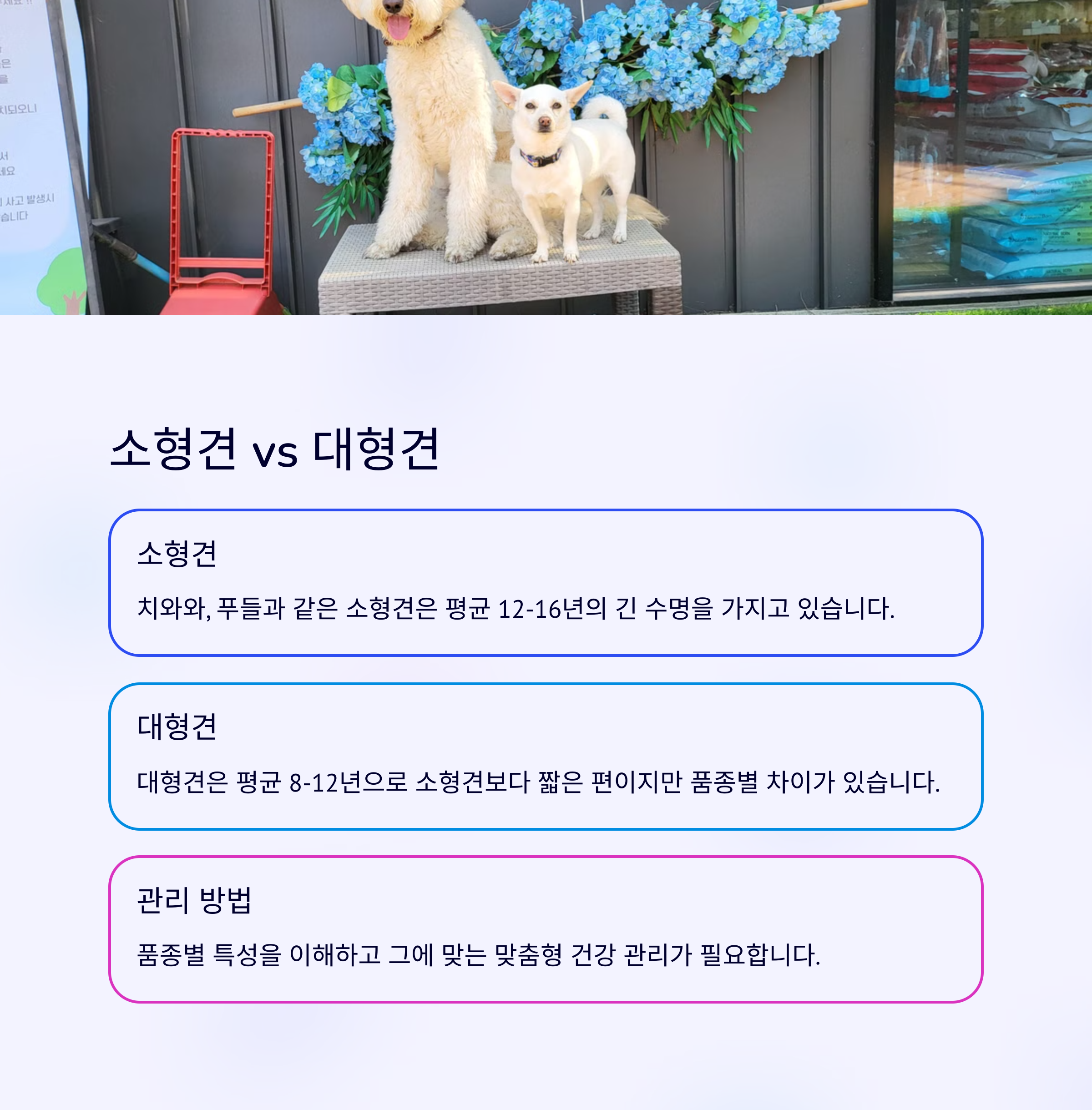 | 강아지 평균 수명 | 소형견 12~16년, 대형견 8~12년 |