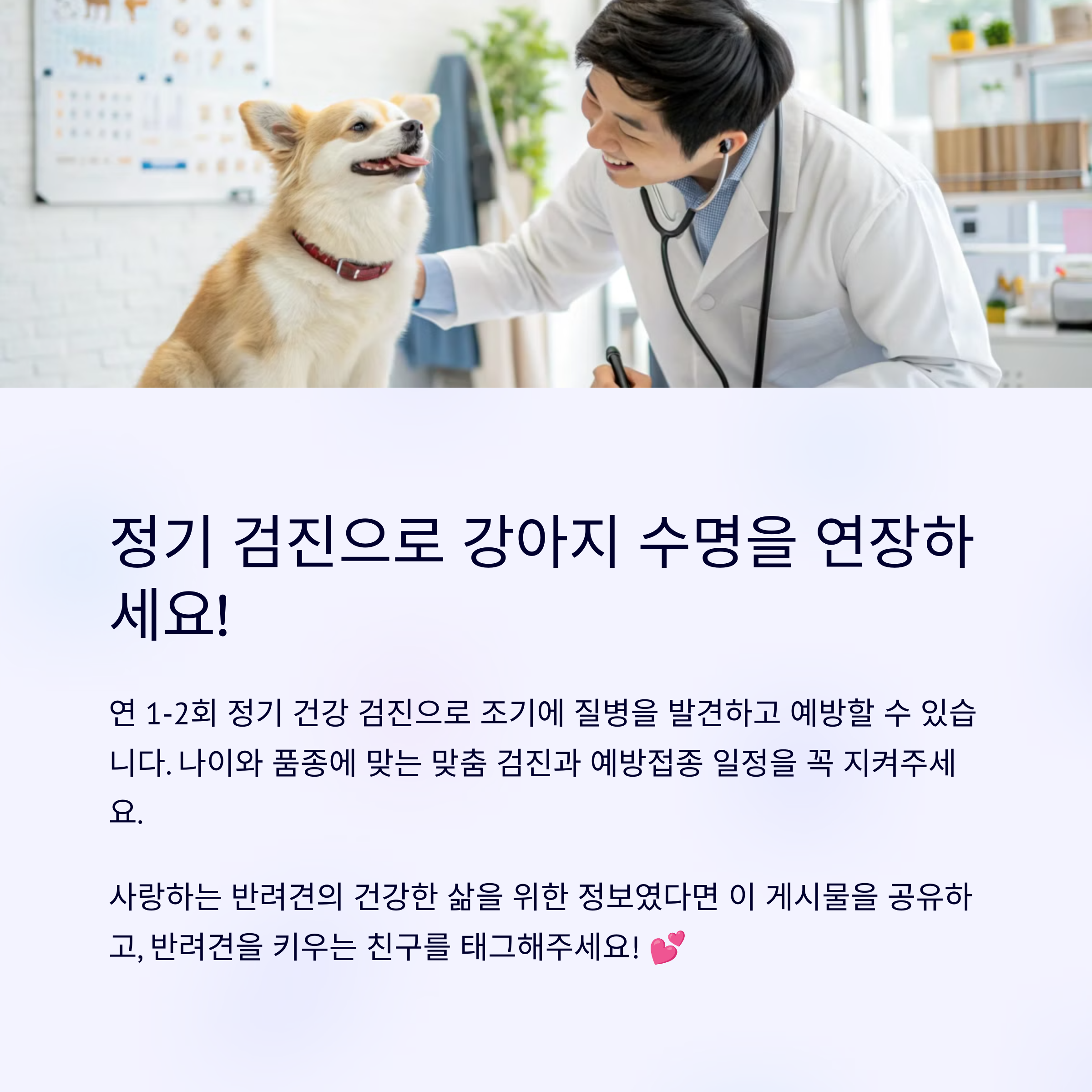| 치와와(15~20년), 골든리트리버(10~12년) | 사람이 먹는 음식은 가급적 피해야 함 | 정기 건강검진과 예방 접종 필수 |