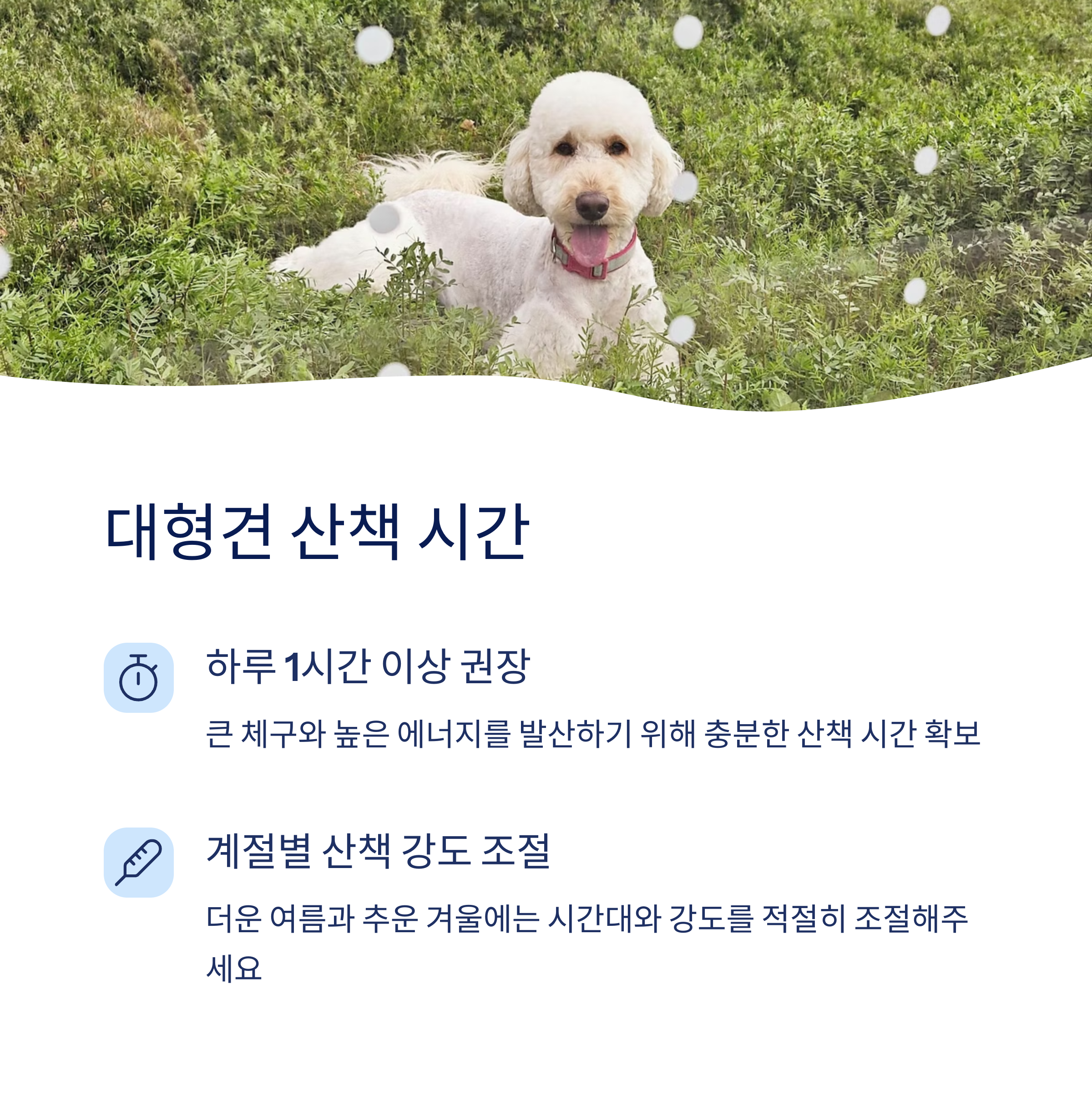 대형견 산책 시간 하루 1시간 이상, 에너지 발산 중심으로!