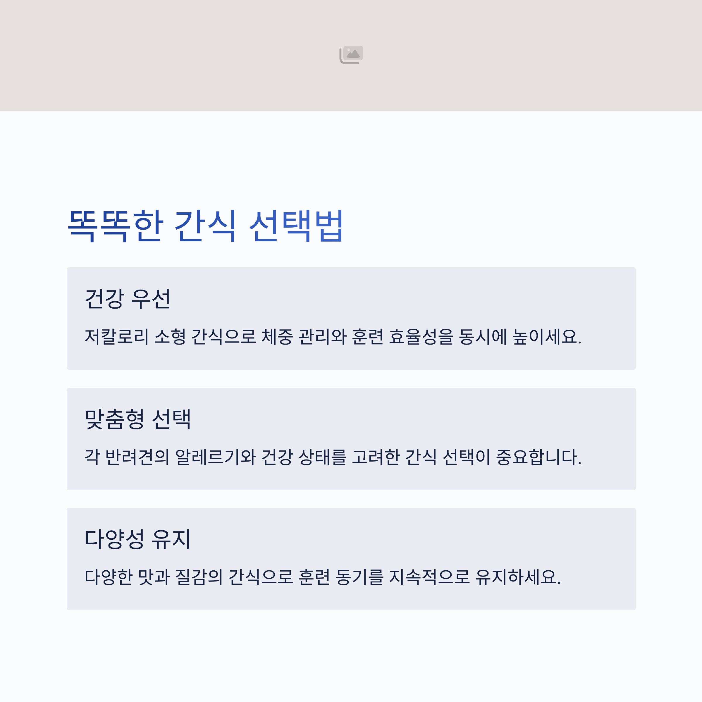 | 차례 훈련 | 간식 선택법 | 훈련 전략 |
