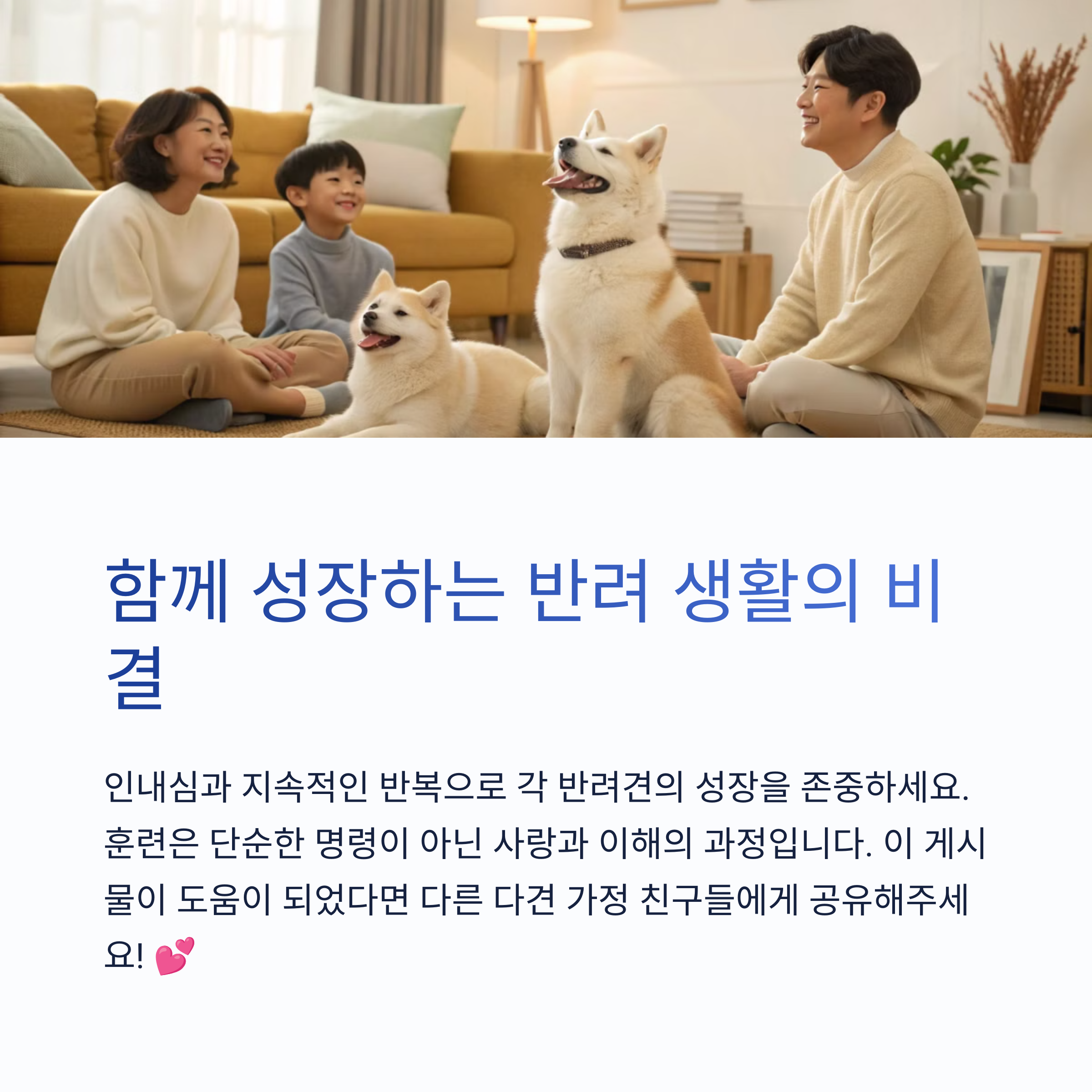 다견 가정에서의 훈련 경험이나 팁이 있다면 댓글로 공유해주세요. 여러분의 이야기가 다른 보호자분들에게 큰 도움이 됩니다!