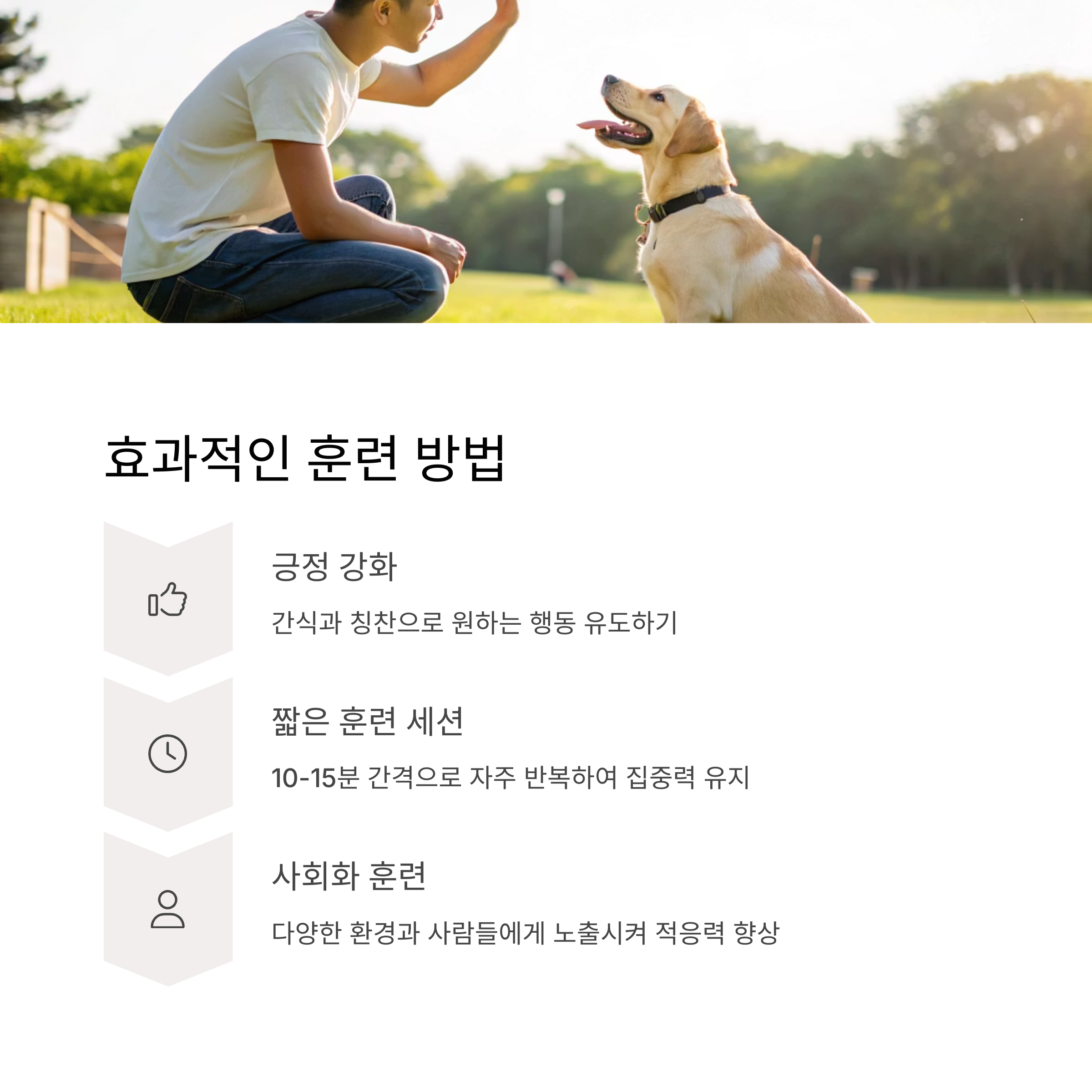 ✔ 긍정적 보상(간식, 칭찬)을 활용하세요.