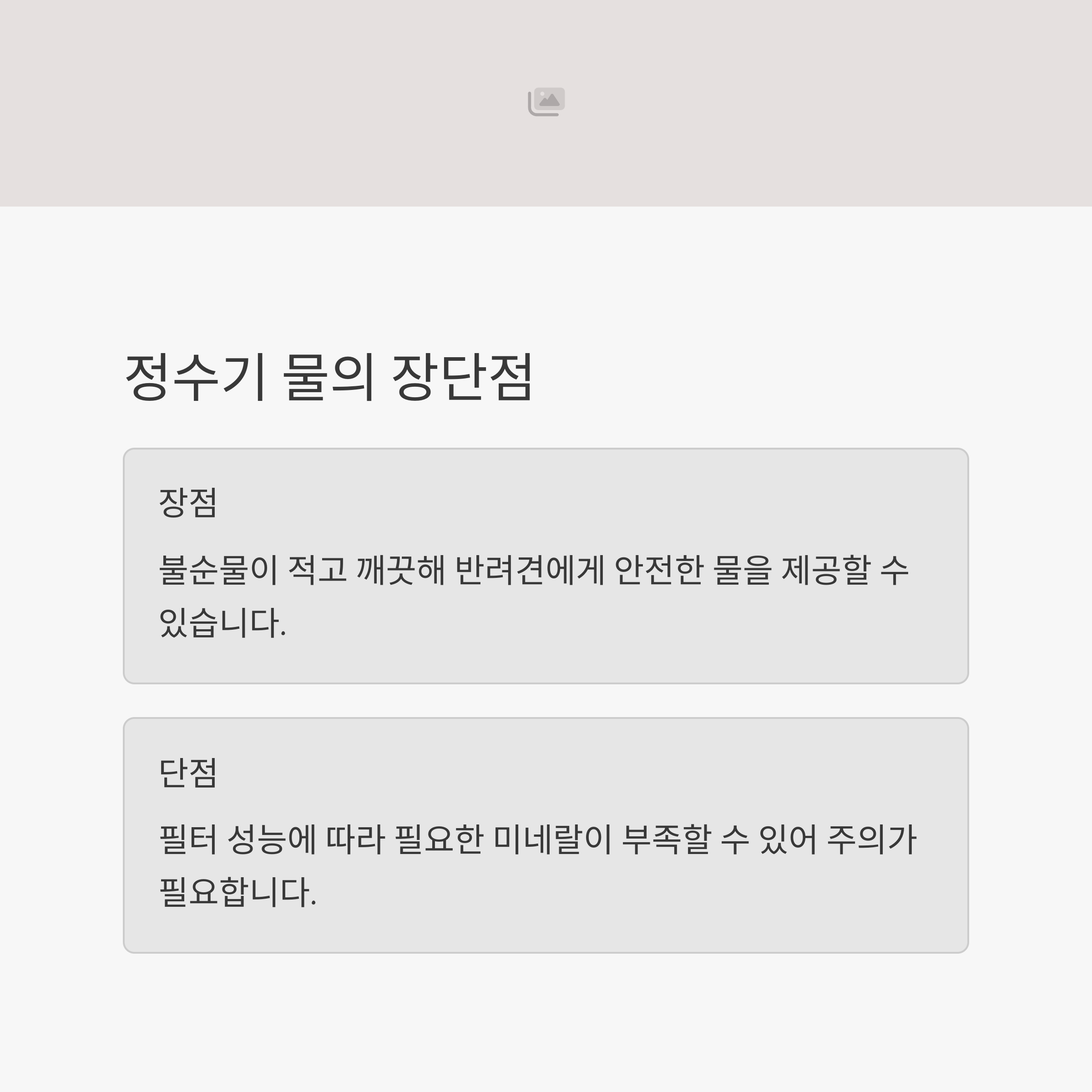 정수기 물은 불순물이 적어 반려견 건강에 좋습니다. 하지만 필터 성능이 낮은 경우 미네랄까지 제거될 수 있으므로 좋은 품질의 정수기 필터를 사용해야 합니다.