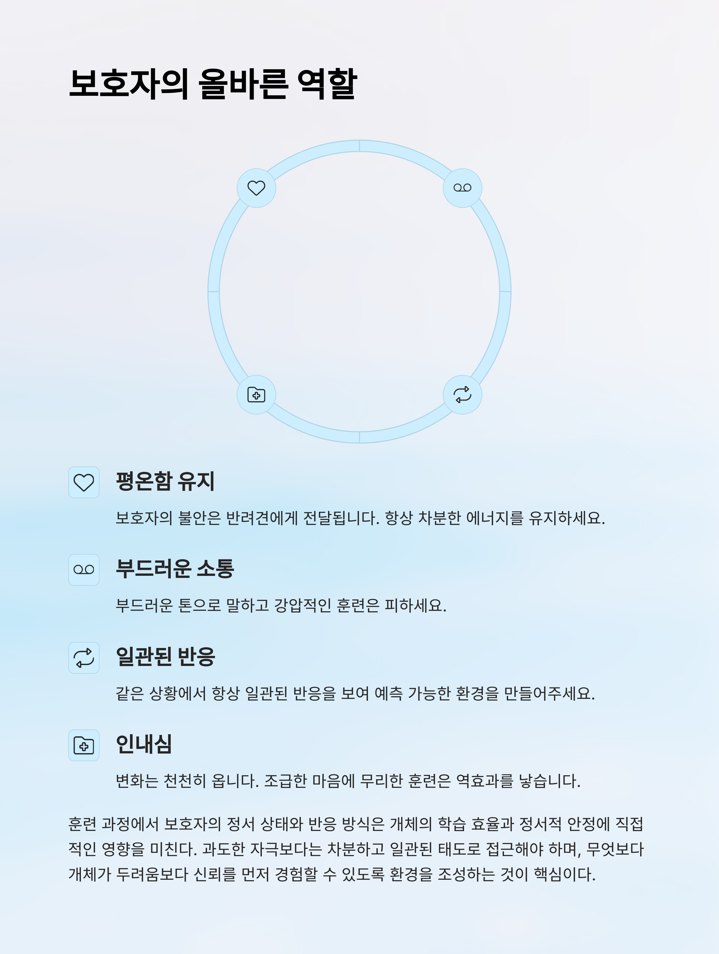 | 공포 반응 | 트라우마 훈련 | 보호자 역할 |