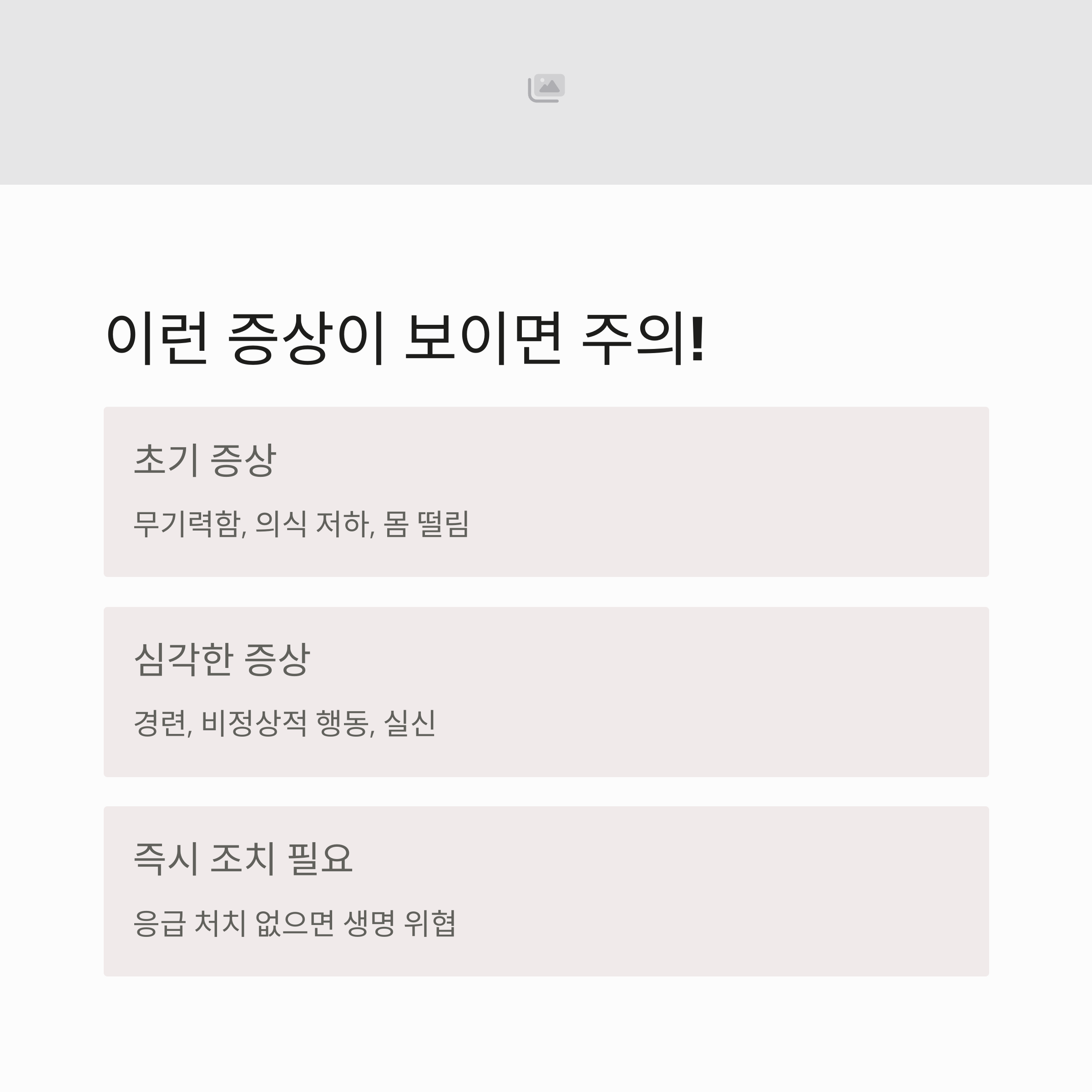 무기력, 떨림, 어지러움, 경련 등이 초기 증상으로 나타납니다. 이때 빠른 대처가 가장 중요합니다.