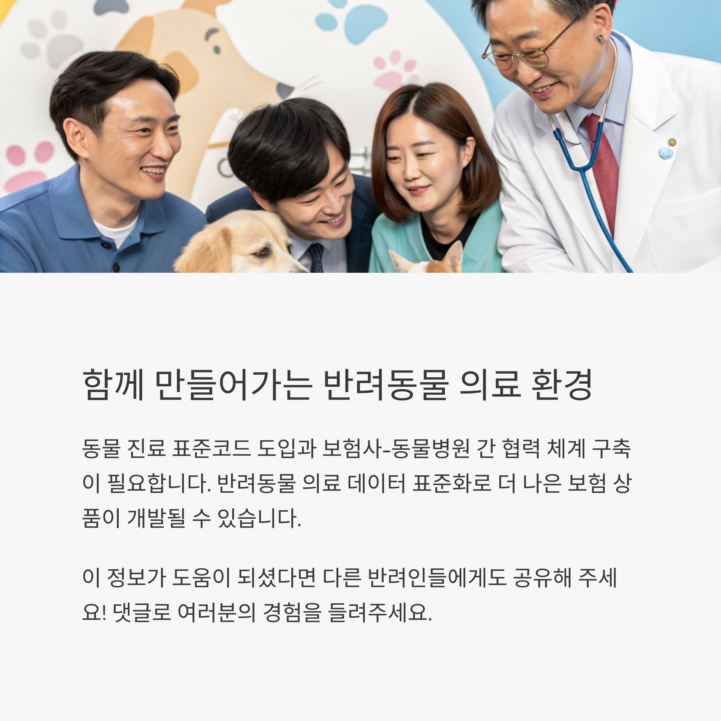 반려동물의 의료비와 관련해 여러분은 어떤 고민이 있으신가요? 실제 겪은 경험이나 개선을 바라는 점이 있다면, 댓글로 남겨 함께 나누어 주세요.
