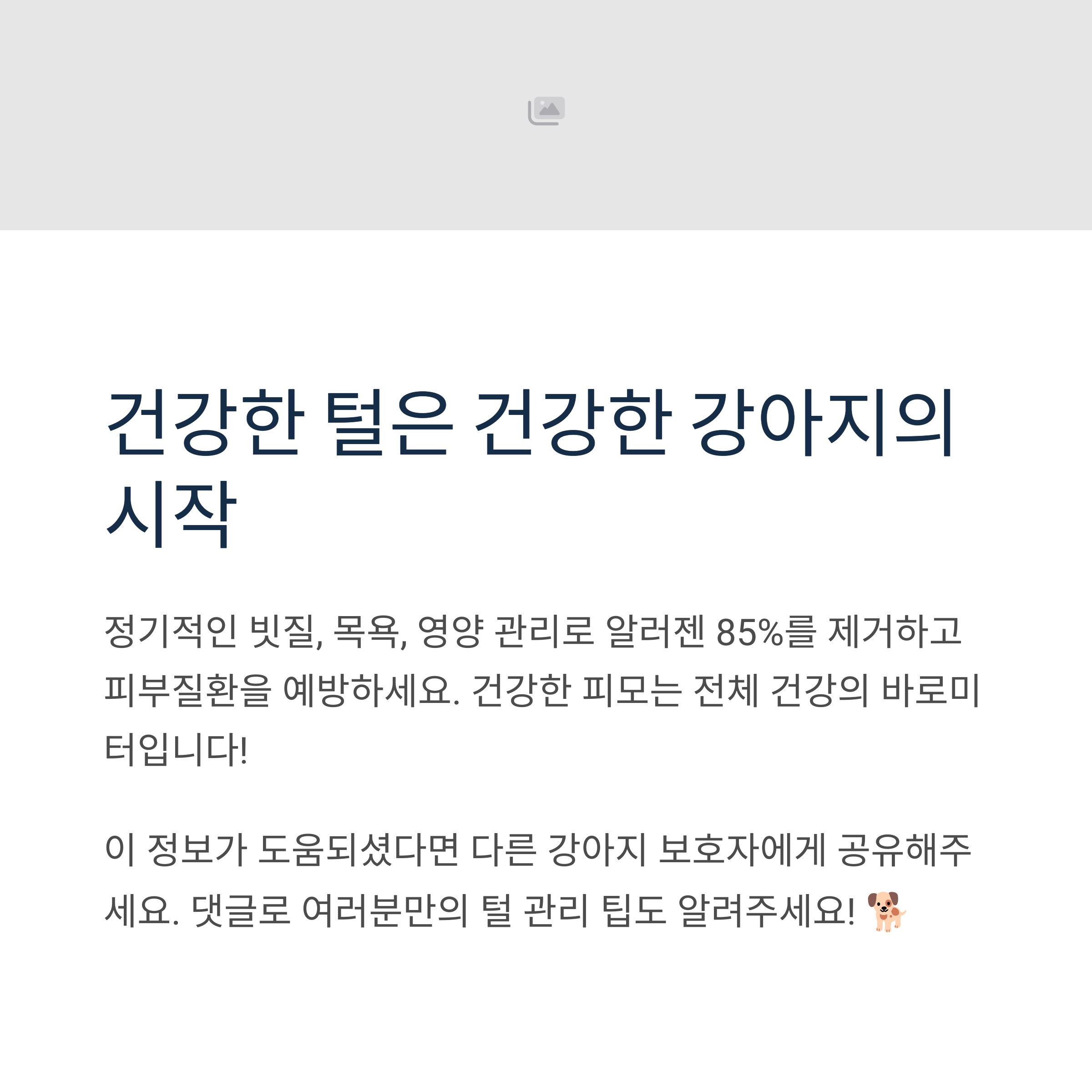 여러분은 강아지 털관리, 어떻게 하고 계신가요? 혹시만의 노하우나 제품 추천이 있다면 댓글로 남겨주세요. 서로의 팁을 공유하며 건강한 반려생활을 만들어봐요!