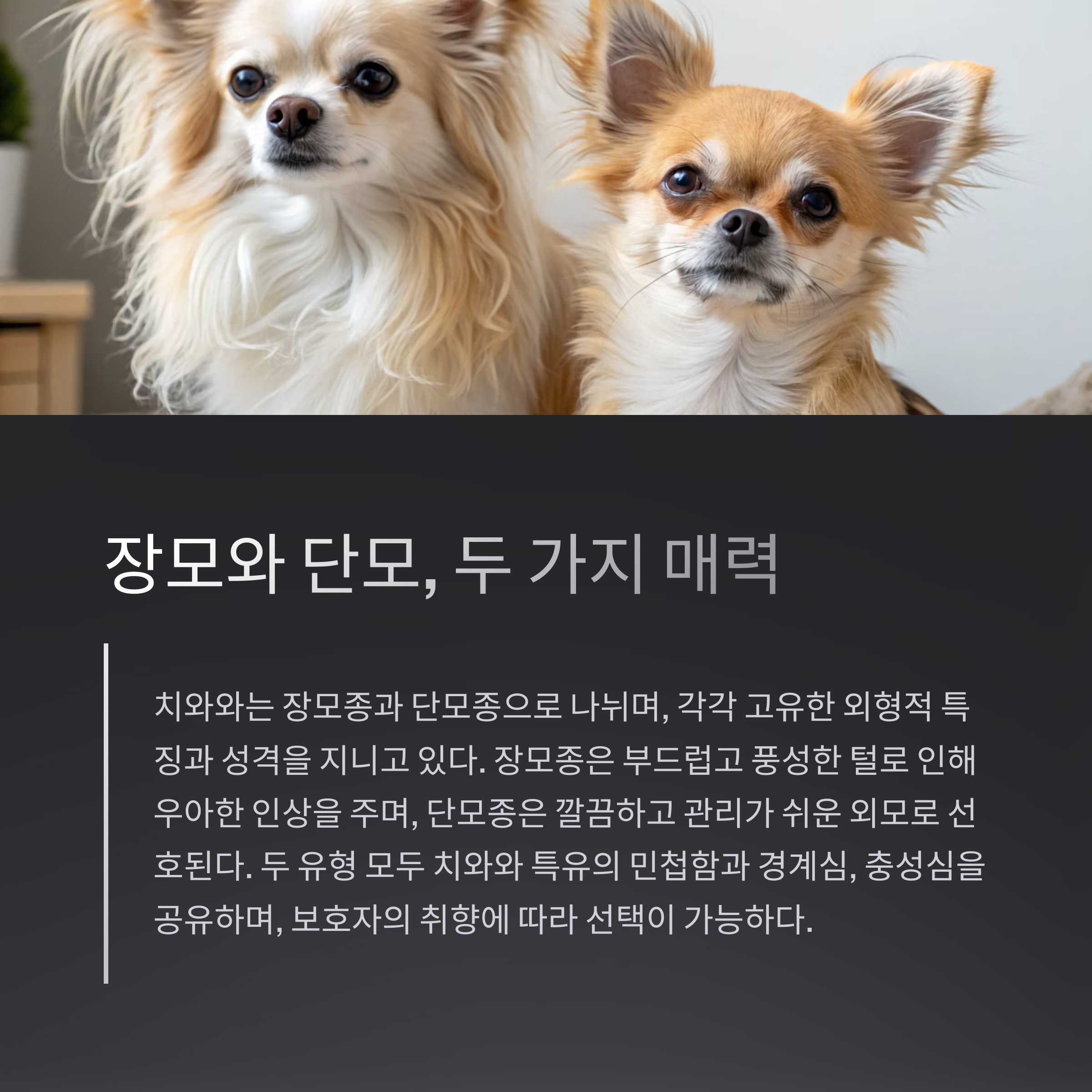 | 치와와 성격 | 작지만 매우 용감하고 충성심이 강한 성격입니다. |