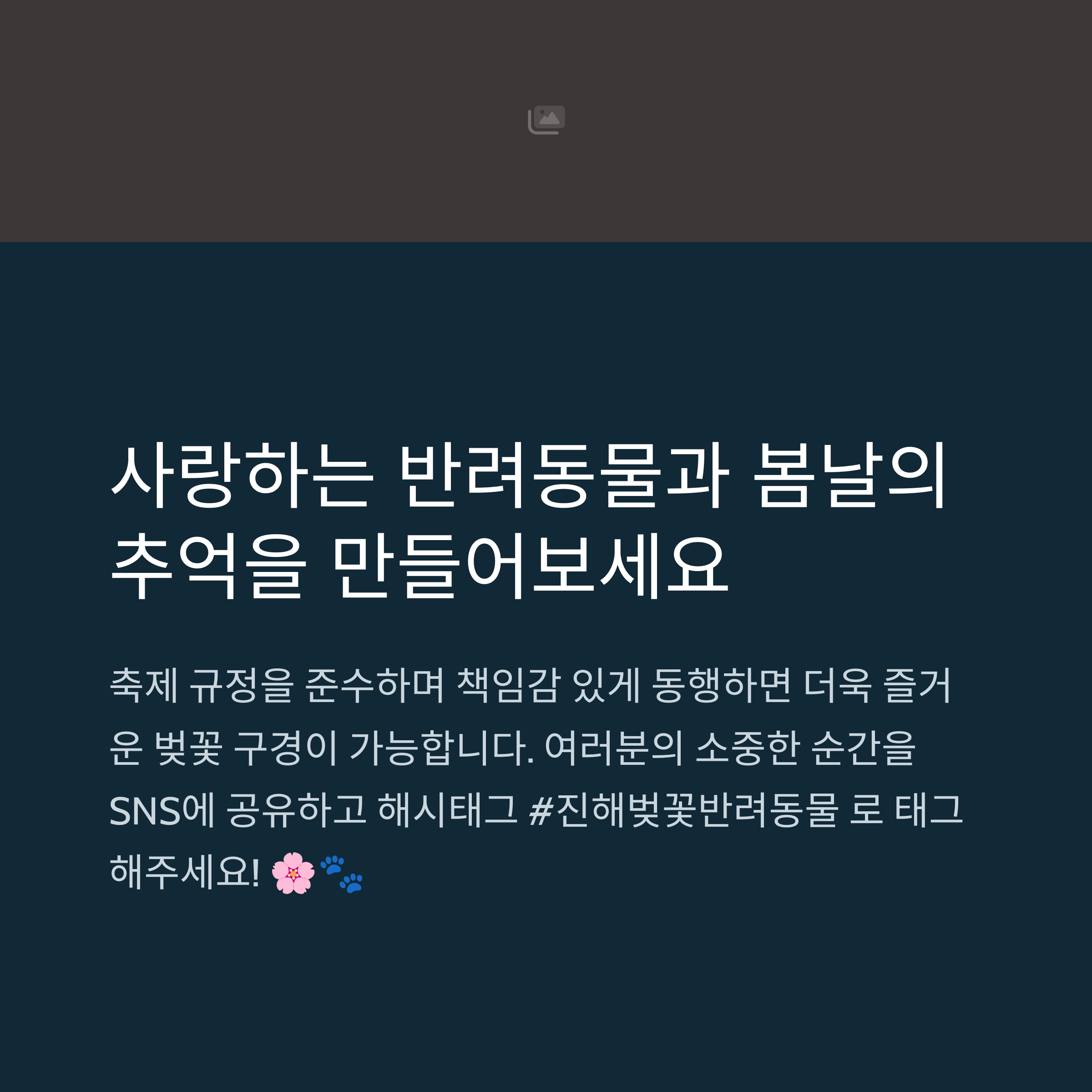 | 일부 야외 공간에서만 가능, 실내는 제한 | 2024년 3월 말 ~ 4월 초, 진해 전역 | 배변봉투, 리드줄 필수, 인파 피하기 |